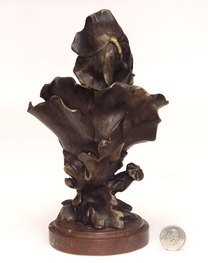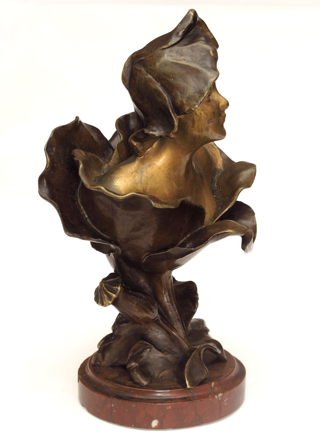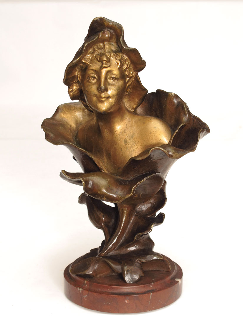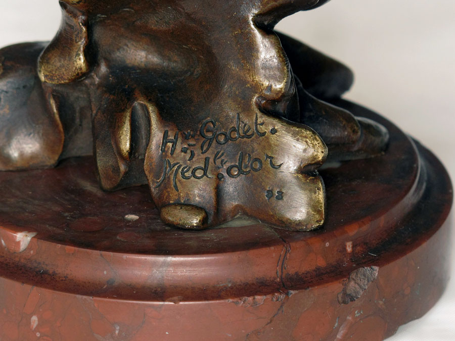 GODET, Henri, (French, 1863-1937): Bronze ''Blossoming'' Maiden, 8'' h., incised signature and marked Med. D'Or, repaired marble plinth, 8 7/4'' base.