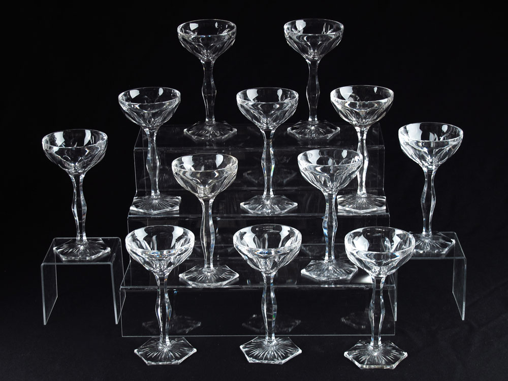 12 BACCARAT QUALITY CRYSTAL STEMS: Unmarked, 7'' h. x 4'' dia.