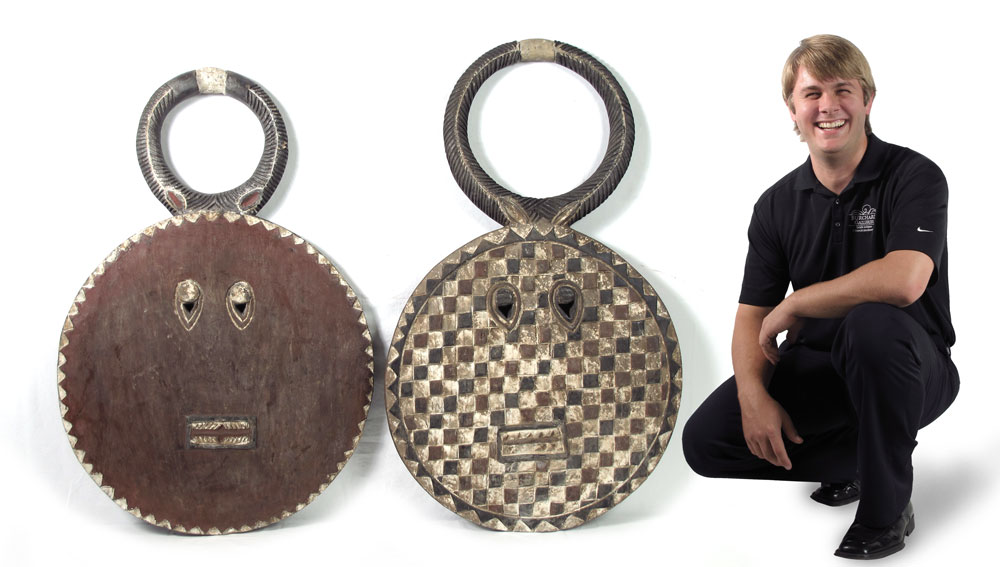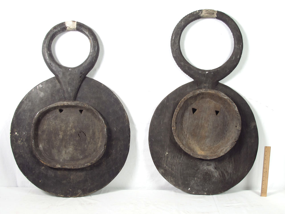 2 CARVED AFRICAN WALL PLAQUE: 13 1/2 lbs., 43 1/2'' x 26'' x 3'' and 11 lbs., 41'' x 27'' x 3''