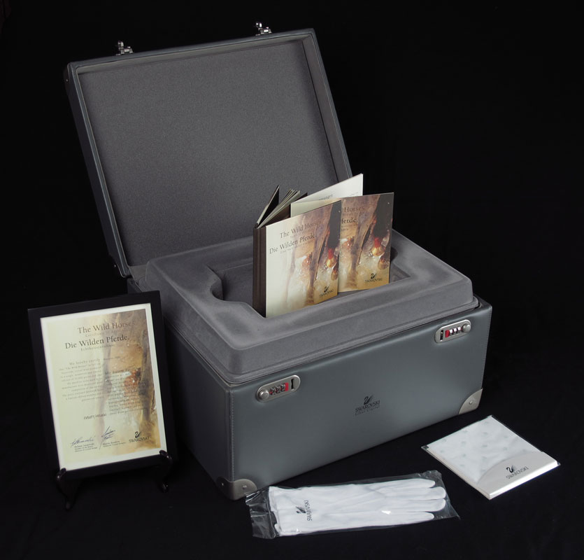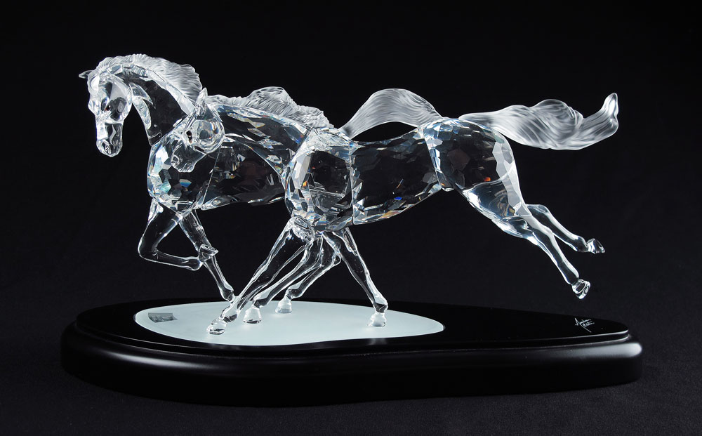 SWAROVSKI CRYSTAL NUMBERED LIMITED EDITION 2001 WILD HORSES: #8651/10,000, 7607 000 003, Martin Zendron designer. With stand, box, certificate, etc.