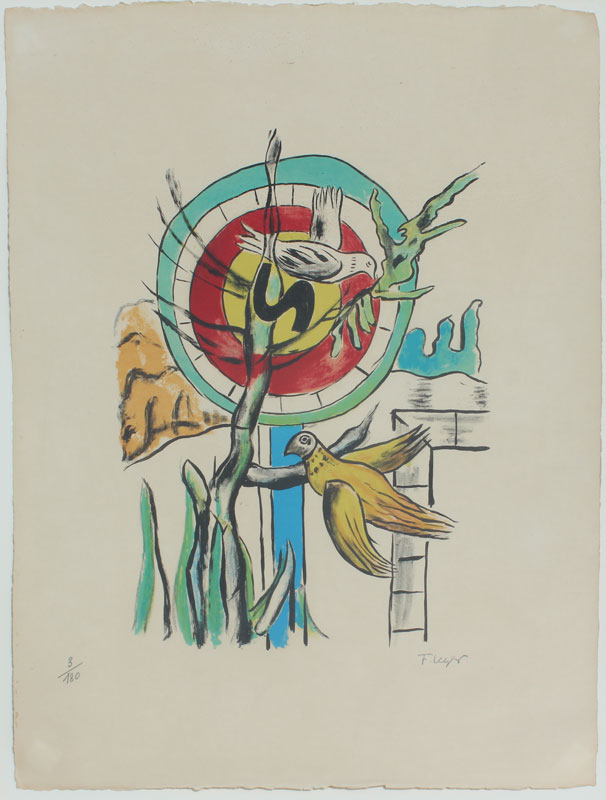 LEGER, Joseph Fernand Henri, (French, 1881-1955): ''La Ville, La Deux Oiseaux'', Lithograph, 26'' x 20'', pencil signed lower right, #'d 3/180 lower left, float mounted in custom black and gold frame, 41'' x 35''.