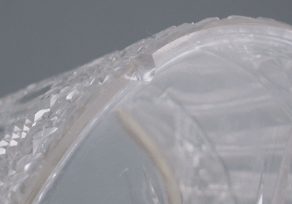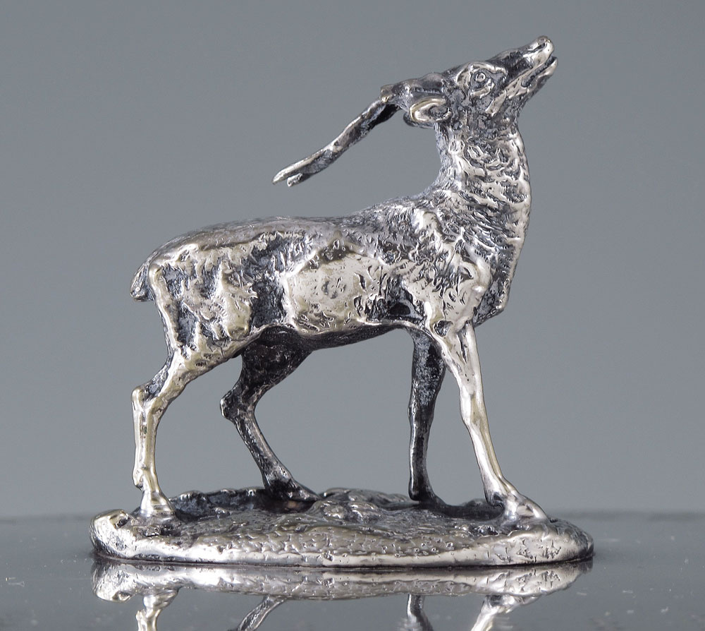 CONDITION: Stag is missing one antler, wear to silverplate on lid, glass has chip to bottom.