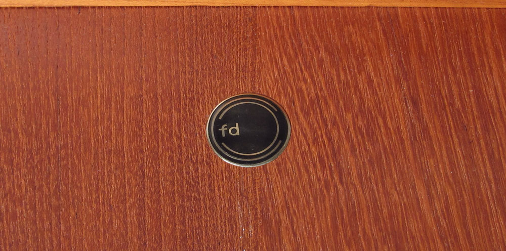 PAIR FRANCE DAVERKOSEN DANISH MODERN SIDE TABLES: Teak, two tier with lower tier having open slats. Approx. 22 3/4'' x 20'' x 29 1/2''. Button marked ''fd''.