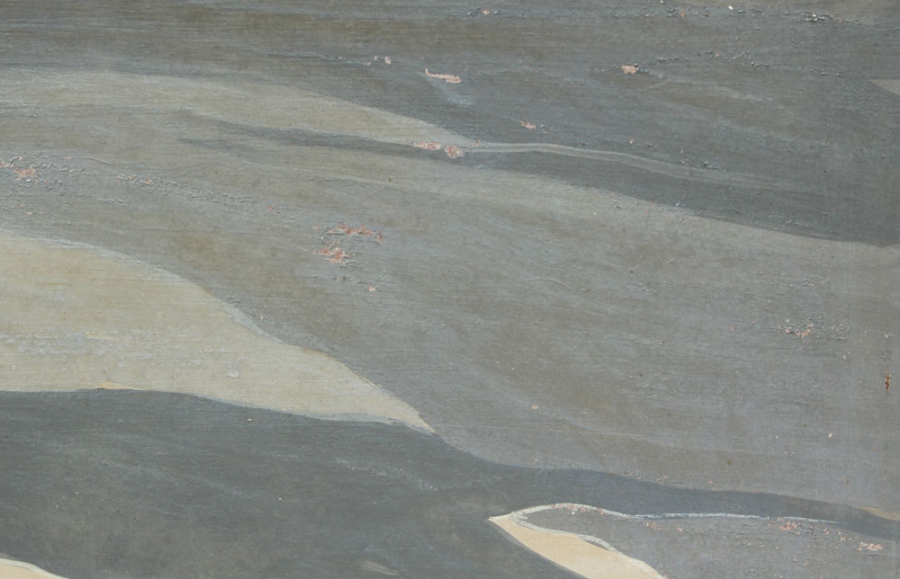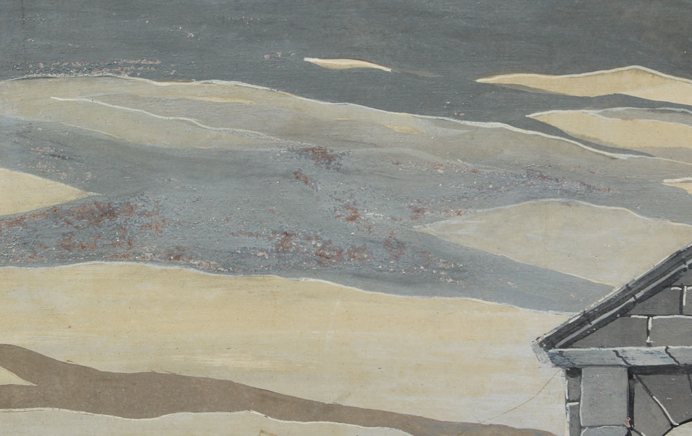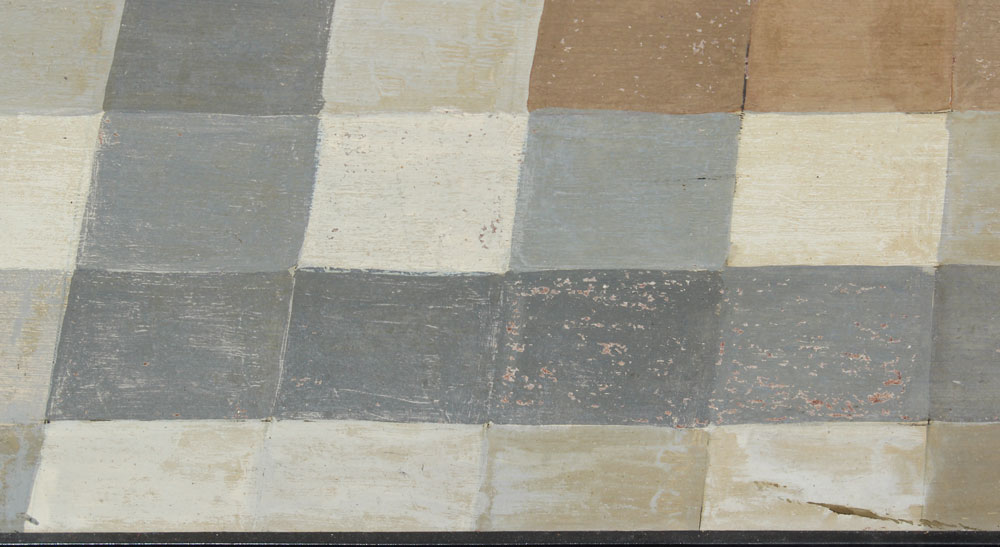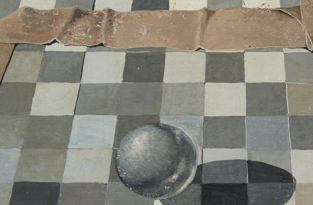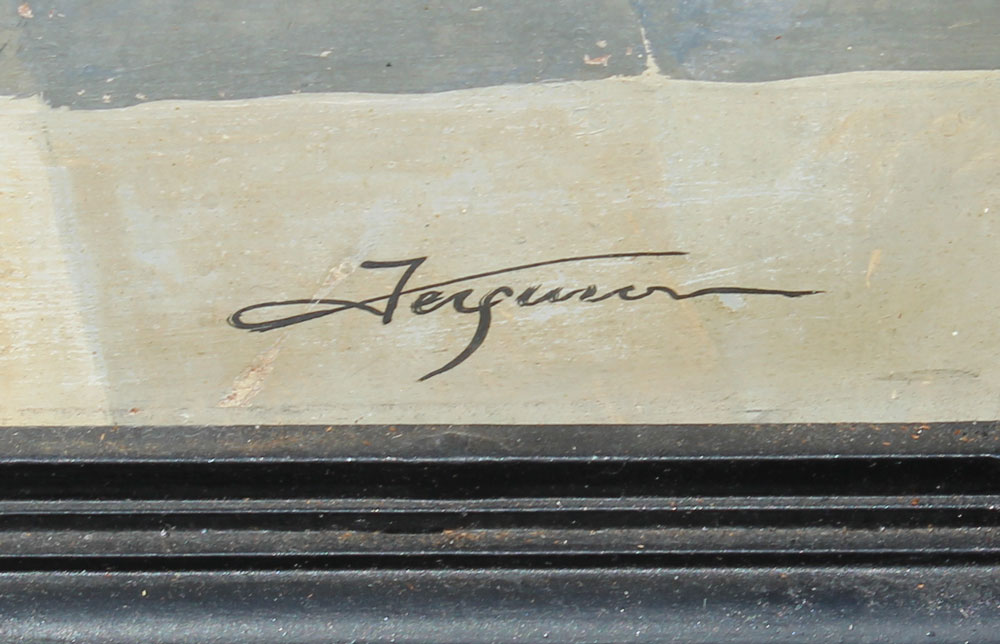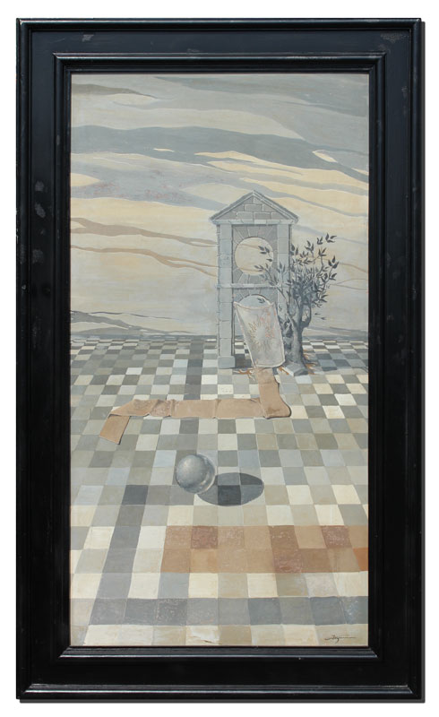 FERGUSON, William Hugh, (American 1905-1985): Surreal Landscape with Checkerboard Groundcover, Oil/Masonite, 51 1/2'' x 27'' signed lower right, painted black frame with wear, 60'' x 36''.