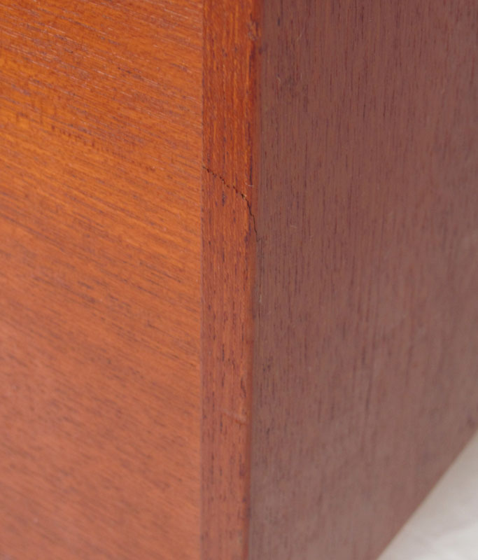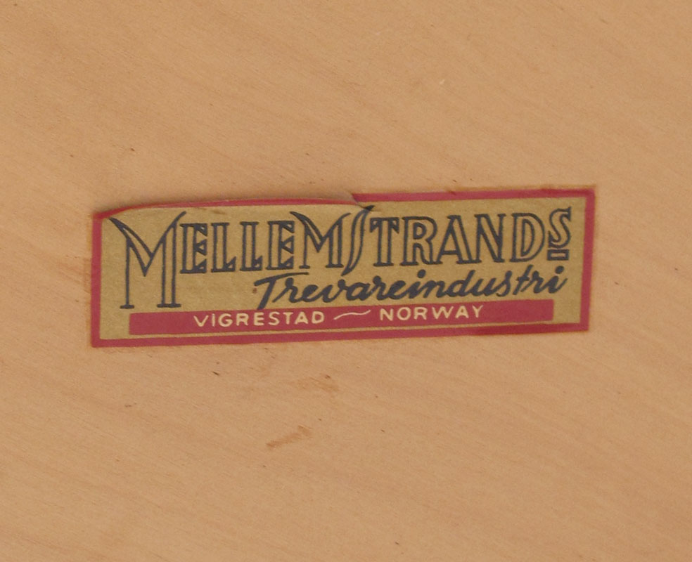 MID CENTURY MODERN TEAK MAGAZINE STAND: Mellem Strands, Made in Norway original label. On castors / wheels. 17 1/4'' h. x 23'' x 16''.