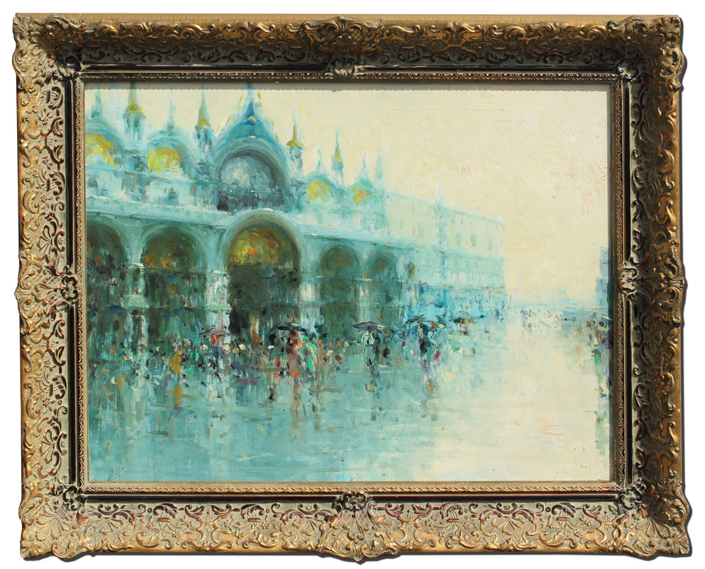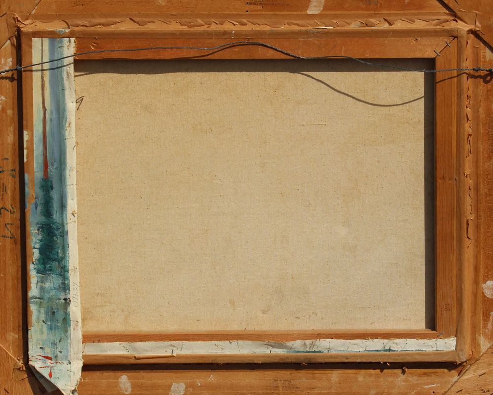 GOOD ILLEGIBLY SIGNED PARISIAN PAINTING: Oil/Canvas, 18'' x 24'', Canvas is stretched irregularly so that the signature is visible verso, encased in a gilded gesso frame 24'' x 29''.
