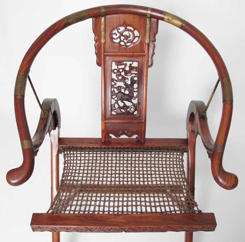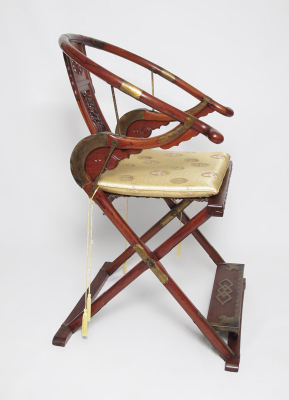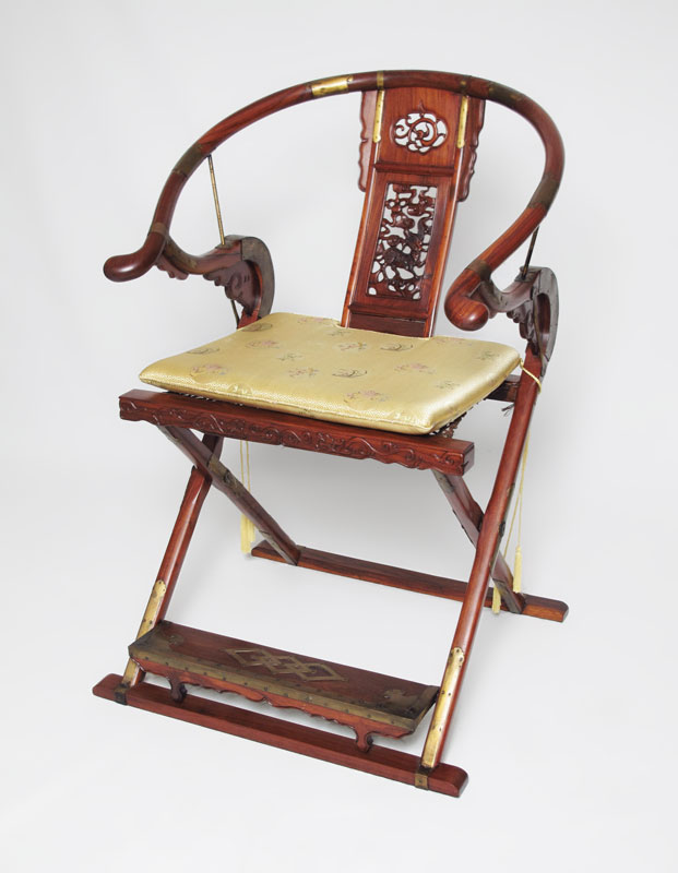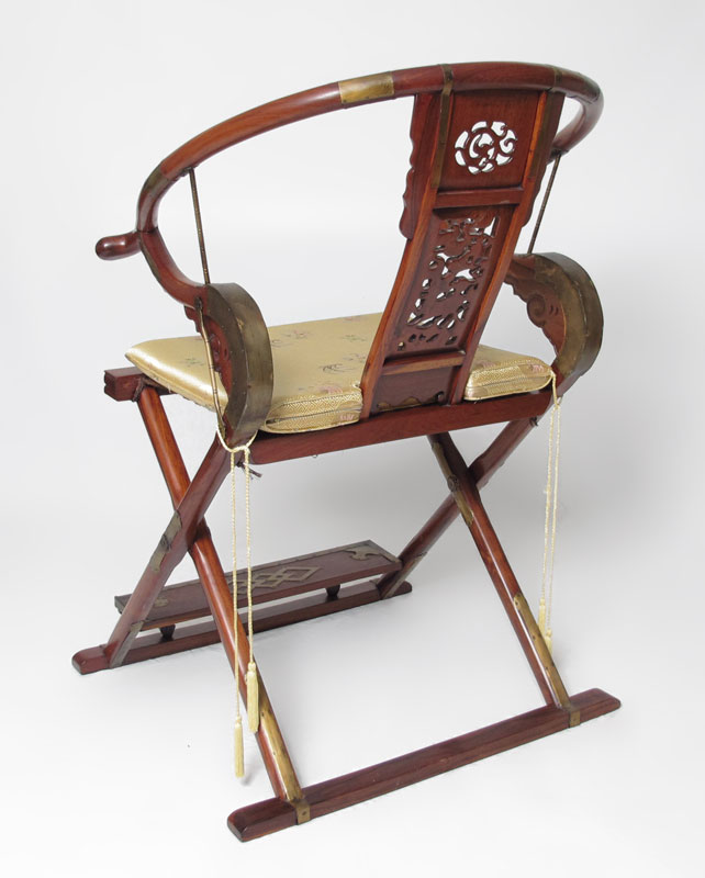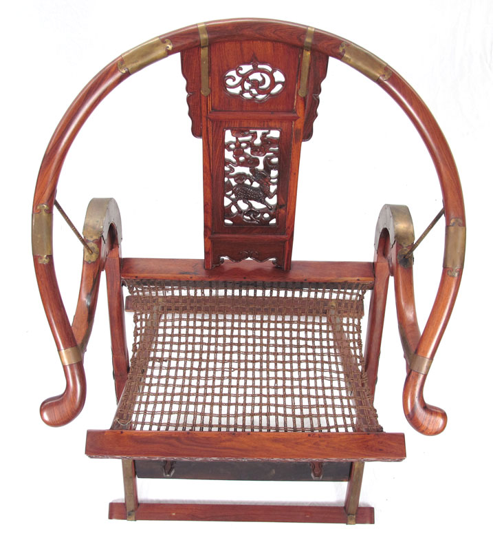 CHINESE ELM WOOD HORSESHOE BACK FOLDING CHAIR: Approx. 42 1/2'' x 29 1/2'' x 27''