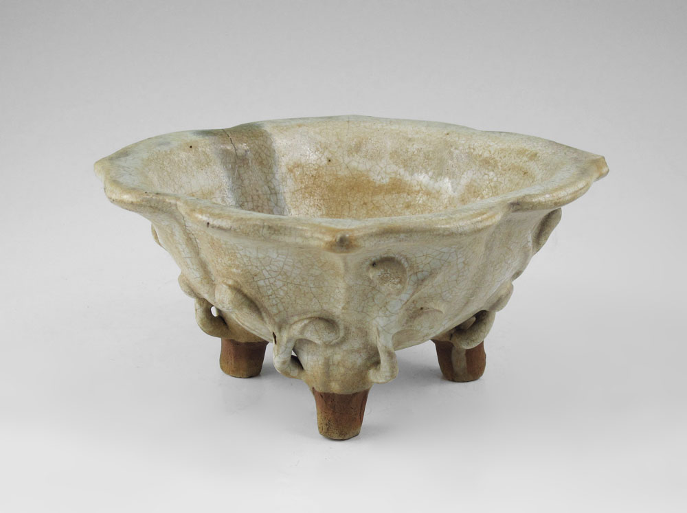 CHINESE ANTIQUE CELADON FLOWER BOWL: Measures approx. 4''h. x 8'' dia.