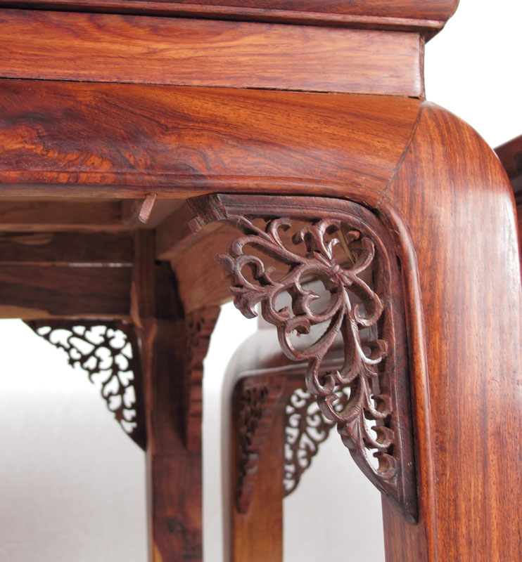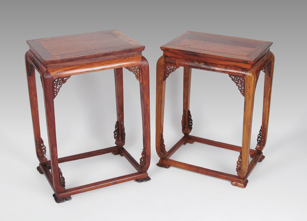 PAIR CHINESE ROSEWOOD SIDE TABLES: Approx. 33''h and 31''h, each approx. 17'' x 23''.