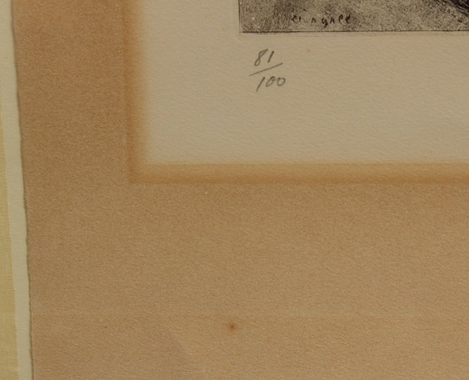 CONDITION: Browning in the margins, small tear in upper right margin, near tape, hinge mounted, minor handling wrinkles, most notable in lower and left margins.