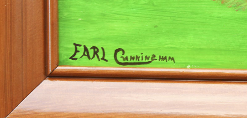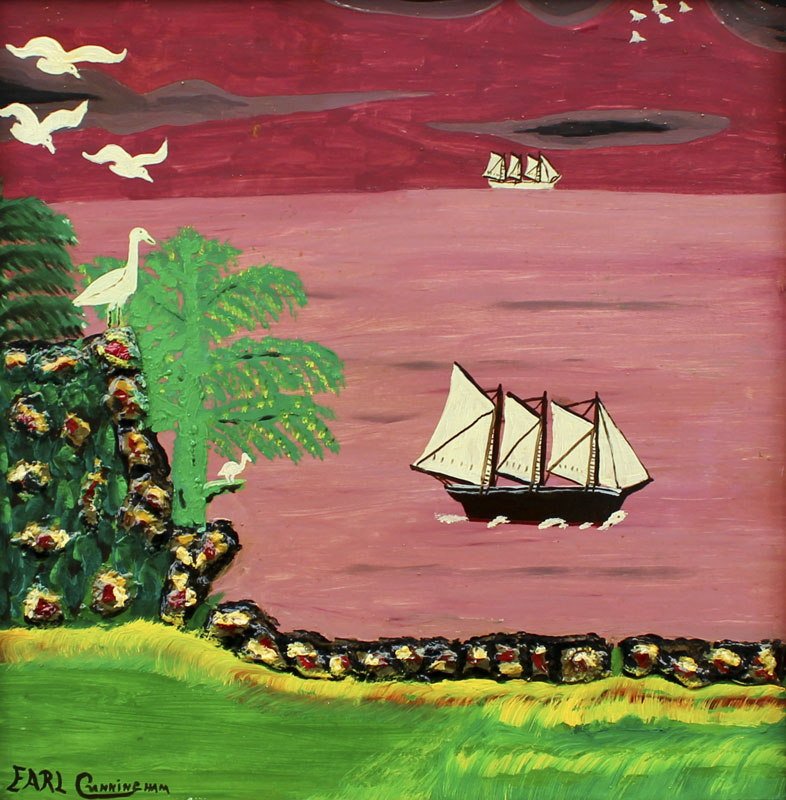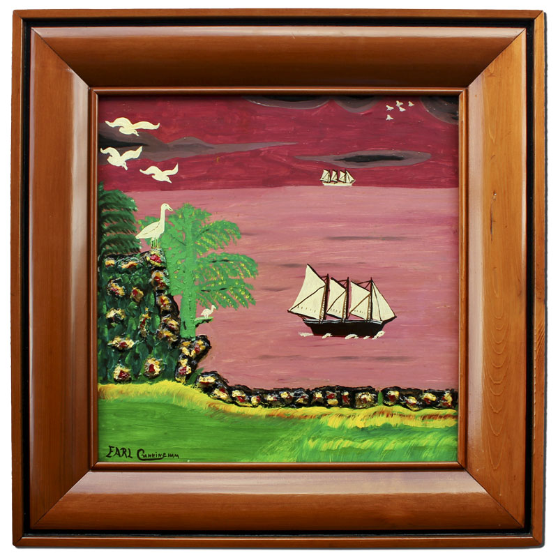 CUNNINGHAM, Earl, (American, 1893-1977): ''Black Schooner At Full Speed'', Oil/Board, 15'' X 16'', signed lower left, custom wood frame, 22 1/2'' x 22'', exhibited in the office of Commissioner Betty Castor. From the Mennello Collection.