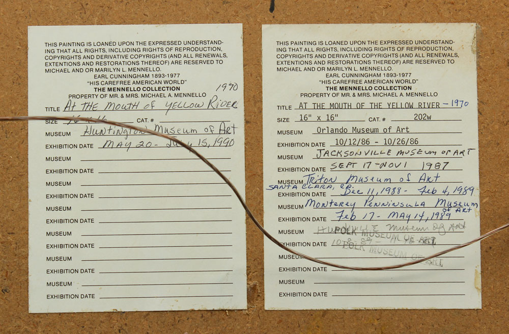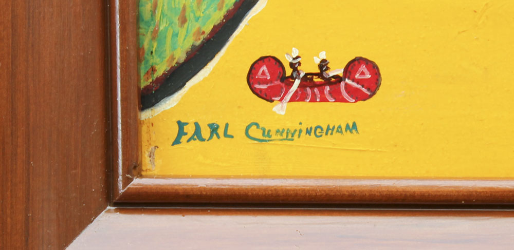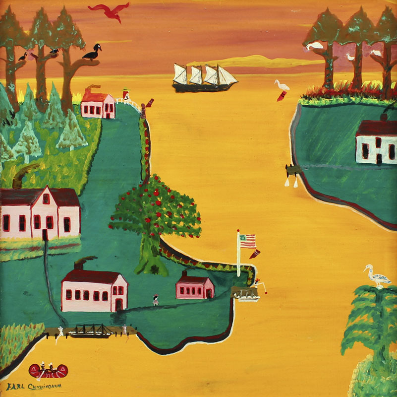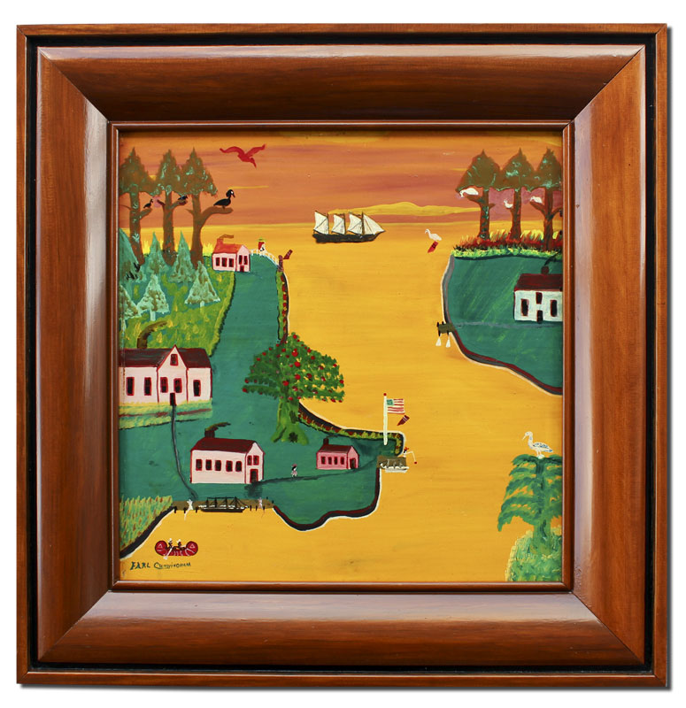 CUNNINGHAM, Earl, (American, 1893-1977): ''Mouth Of Yellow River'', Oil/Board, 16'' x 16'', signed lower left, custom wood frame, 22 1/2'' x 22 1/2'', exhibition labels verso from the Huntington, Orlando, Jacksonville, Triton, Monterey Peninsula, and Polk Museums from the Mennello Collection.