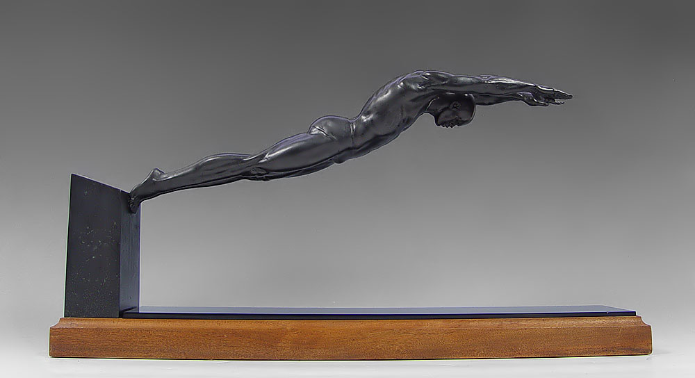 SCHOMBERG, Auldwin Thomas, (American, 1943-): ''Start'' Diver Bronze 13'' h. x 28'' x 6'', 5/18. From the Dr. Andrew Haraway Collection. Sculptor did the Rocky bronze in Philadelphia.