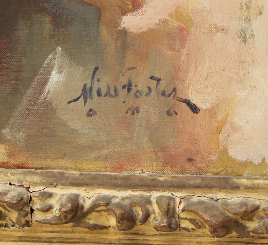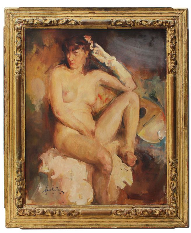 FOSTER, William Frederick, (American, 1883-1953): Reclining Female Nude, Oil/Canvas, 30'' x 25'', signed lower left, encased in a period gilded gesso frame with overpaint and wear, 37 1/2'' x 32 1/2'', will need to be cleaned and re-varnished, signed lower left, Will Foster, A.N.A.
