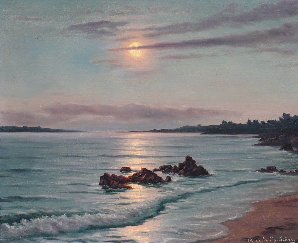 DE LA CORBIERE, Roger, (French, 1893-1974): Moonlit Coastal Scene, Oil/Canvas, 18'' x 22'', signed lower right, period frame with minor wear, 24 1/2'' x 28 1/2''.