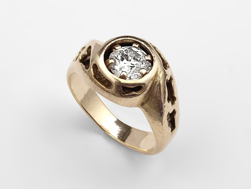 AN ESTATE 1.00 CT. DIAMOND SOLITAIRE RING: 14K yellow gold ring contains one Old Mine cut diamond, approx. 1.00 Ct. Rated VS2 in clarity and G in color. The diamond appears to be floating in a nugget type ring. Weight: 7.5 grams Size: 8