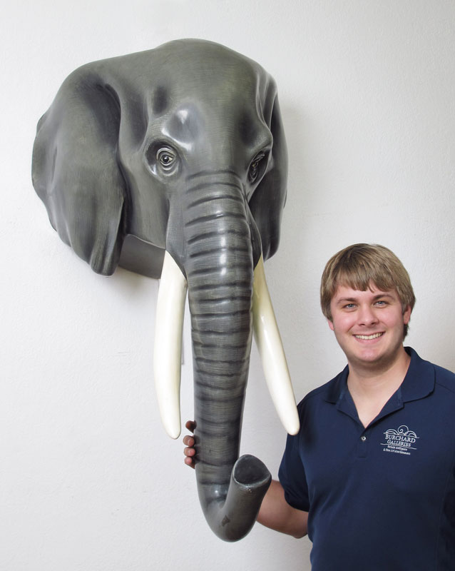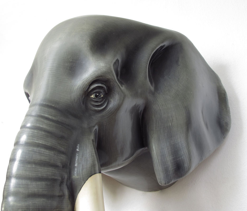 ELEPHANT HEAD BY SERGIO BUSTAMANTE 81/100: Composite construction. Signed and numbered 81/100. 48'' h. x 30'' x 33''.