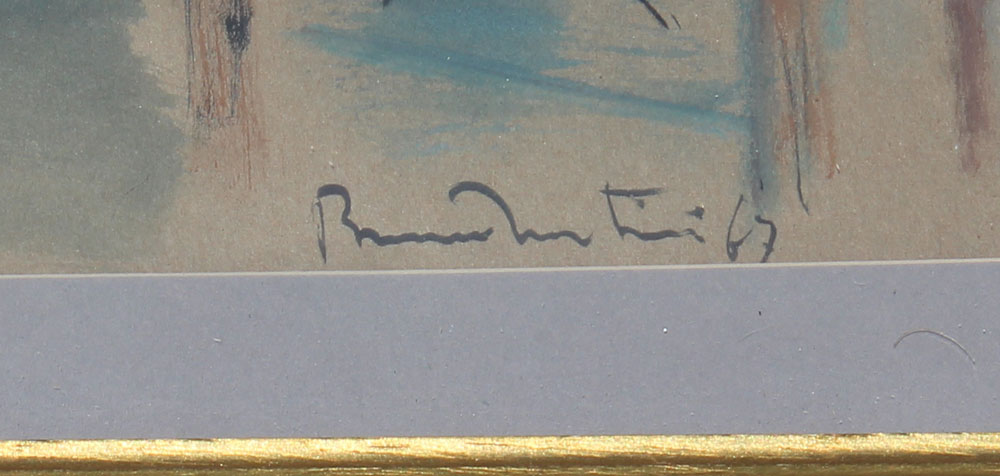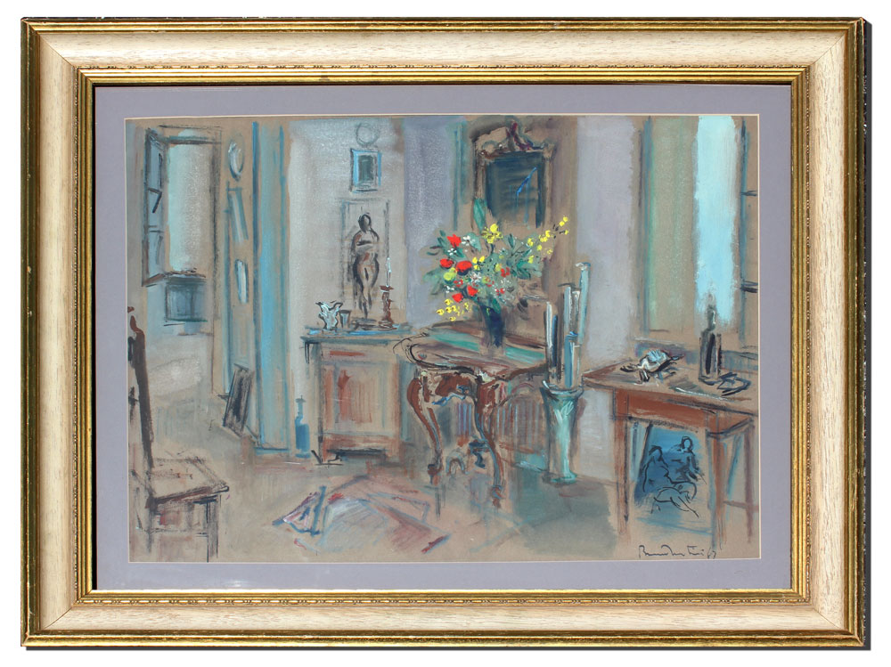 MARTINI, Bruno, (French, 1911-1979): ''Apartment Interior'', watercolor and gouache embossed, 16'' x 22 1/2'', signed lower right, encased in a gilded frame with minor wear, 23'' x 30''.