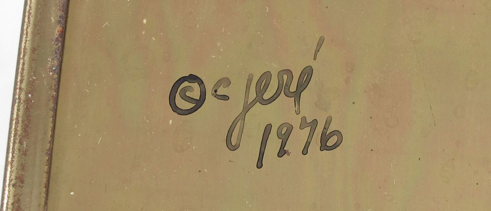 CURTIS JERE 1976 BRASS ROUND MIRROR: Signed C. Jere, 1976. 23 1/2'' dia. x 6 1/4'' deep.