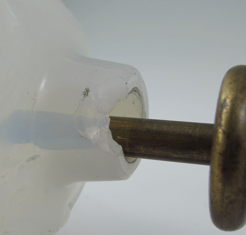CONDITION: Note large chip on top of vase hidden by collar, rough drill hole on base.