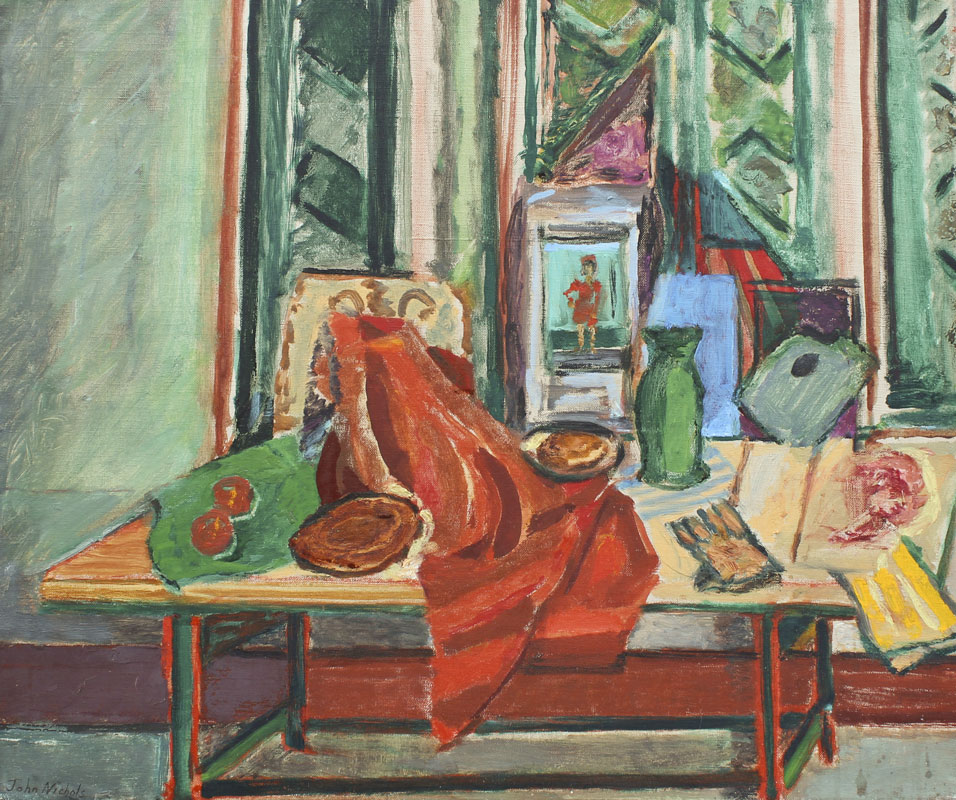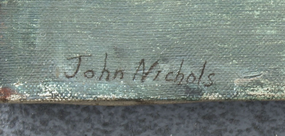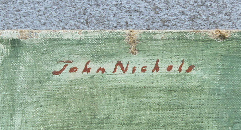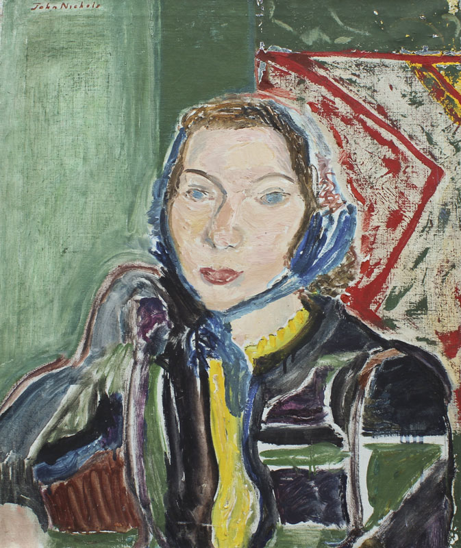 NICHOLS, John, (American, 1899-1963): 2 Oils/Canvas, to include: Artist Studio Interior, Oil/Canvas, 20'' x 24'', unframed, signed lower left. Female Portrait in the style of Modigliani, 24'' x 20'', signed upper left, unframed.