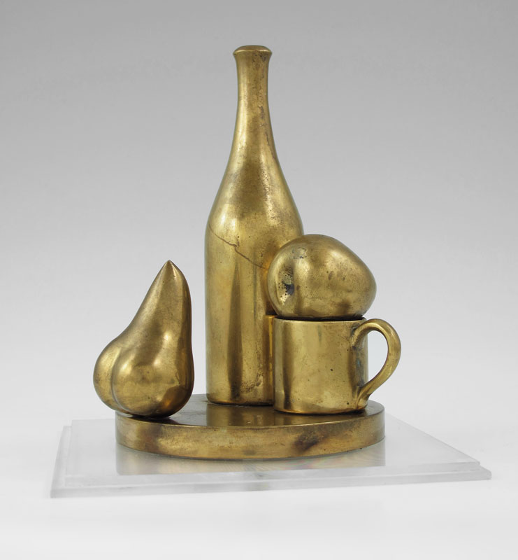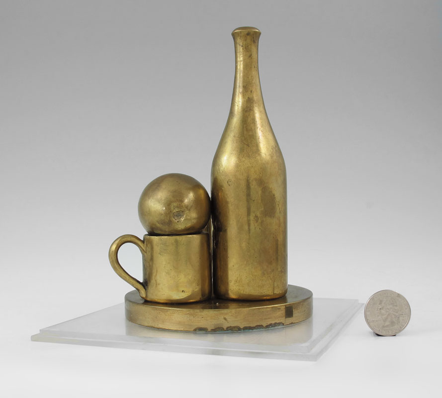 SUTTMAN, Paul, (American 1933-1993): ''Buon Natale'', Bronze Still Life of Fruit and Vessels, 6 1/2'' h., affixed to a plexiglass plinth, underneath it reads; Walter Thompson Company Commission, dated 1978, titled, #'d 32 (?)/300.