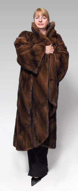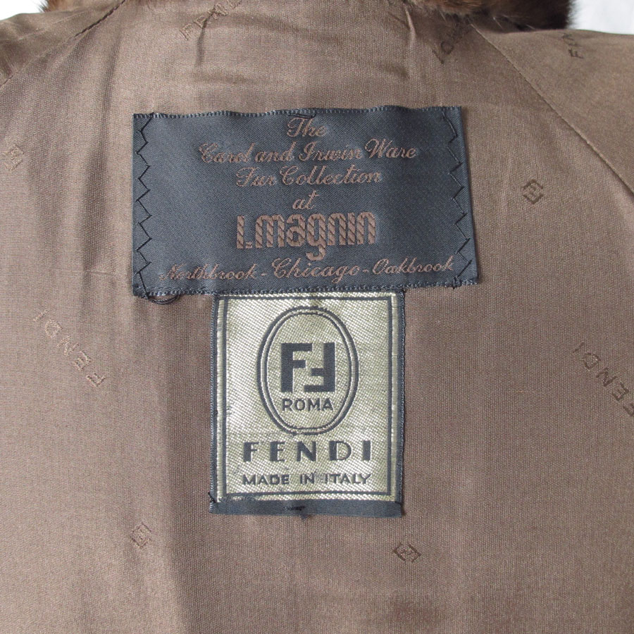 FENDI FULL LENGTH MINK SWING COAT: Natural mink coat designed by Fendi for Carol & Irwin Ware Fur Collection at I. Magnin. Fully lined, single large fur covered button, approx. size 14, 51''l., sleeves 22''.