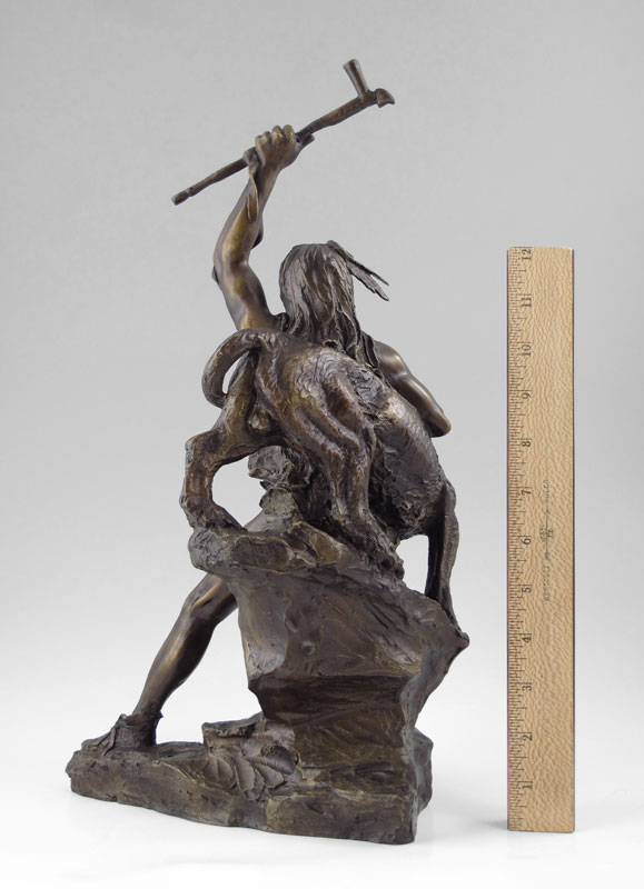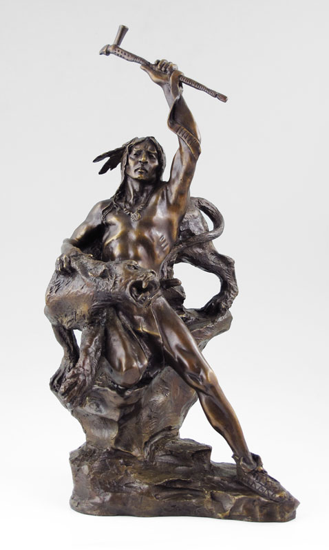 MCCAIN, Buck, (American, 20th Century): Indian Warrior Fighting a Panther, Bronze, 16'' h., incised signature,