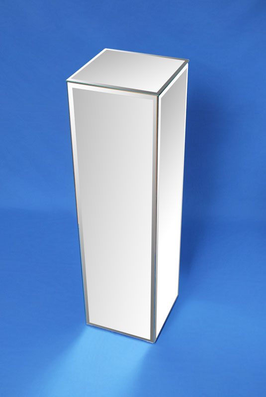 MIRRORED GLASS PEDESTAL: Beveled glass sides and top. 36'' x 10 1/2'' square.