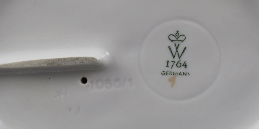 WALLENDORF PORCELAIN WHITE HORSE WITH NUDE RIDER: 7 1/2''h. X 7 1/2'' wide. The woman with a dagger in hand.