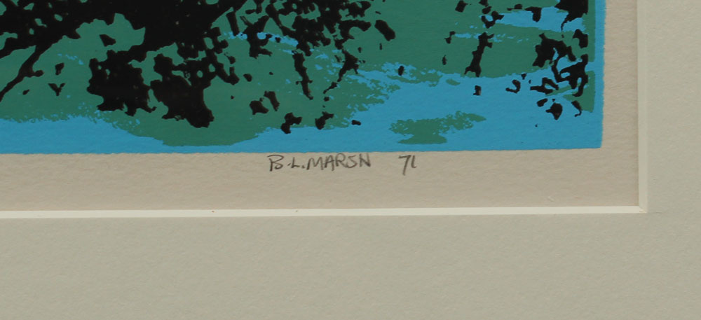 MARSH, Bruce, (American, 20th Century): Landscape in Blue, Serigraph, sight size, 16'' x 20'', pencil signed lower right, dated '71, #'d 6/15, lower left, custom frame, 27'' x 31'', exhibited at the Tampa Museum of Art, stamped verso.