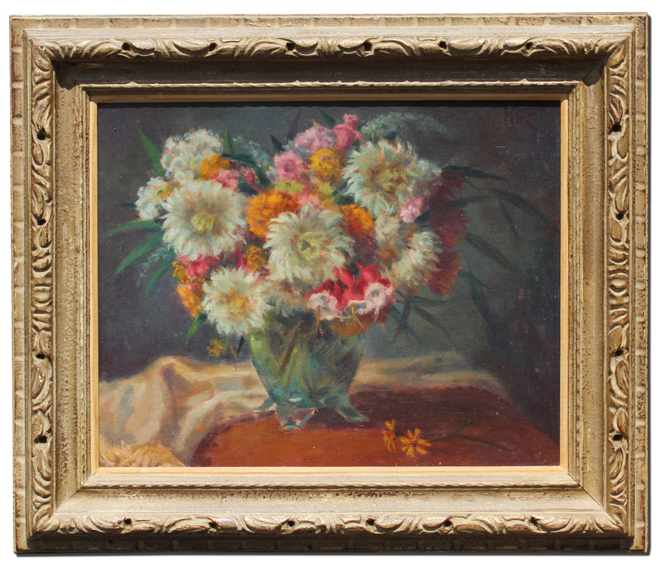 KLEIN, Sandor C., (AMERICAN 1912-1995): Floral Still Life of Carnations in a Vase, Oil/Canvas, 16'' x 20'', signed upper right, carved gesso frame, 23'' x 27''.