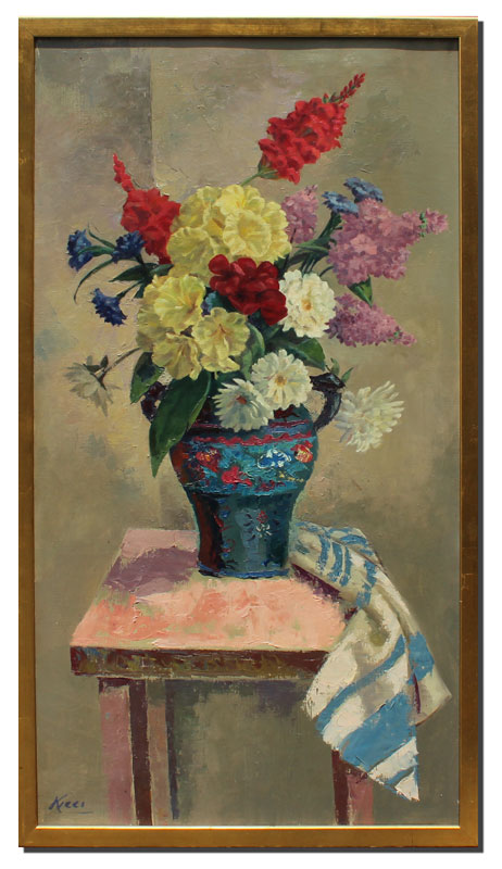 KLEIN, SANDOR C., (American 1912-1995): Floral Bouquet in a Blue Vase, Oil/Canvas, 38'' x 20'', signed lower left, gilded frame, 40'' x 22''.