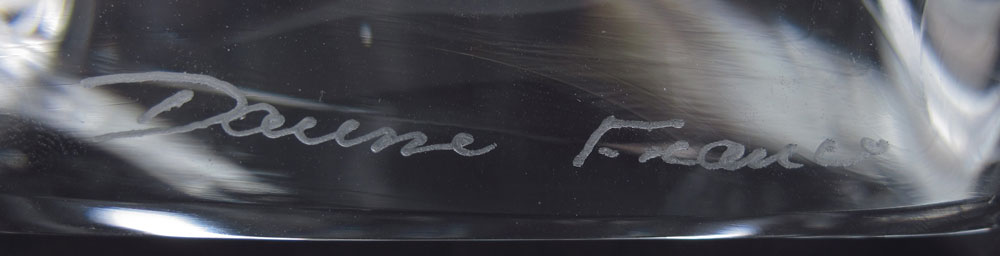 DAUM FRENCH CRYSTAL SAILBOAT SCULPTURE: Sparkling clear crystal stylized sailboat, signed Daum France lower edge, 15 1/2'' x 8'' x approx. 5''.