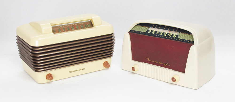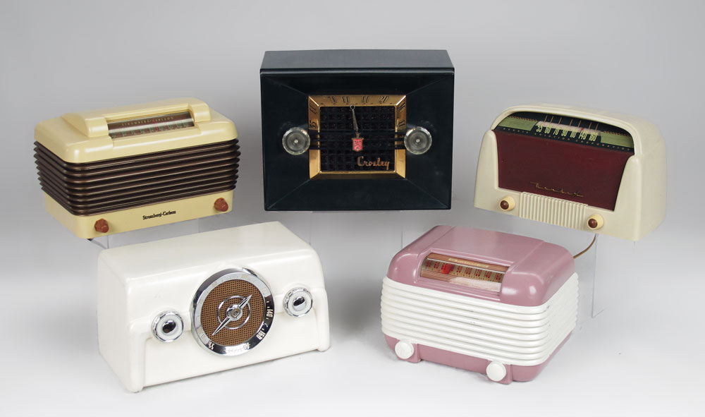 CROSLEY, FIRESTONE, BENDIX, STROMBERG VINTAGE RADIOS: 5 Piece, Crosley 11-109U, 10-135 Firestone Air Chief 4-A-10, Bendix 55L3U, Stromberg Carlson 1101 Series 13E. Largest measures 9 7/8'' x 13'' x 7 1/4''.