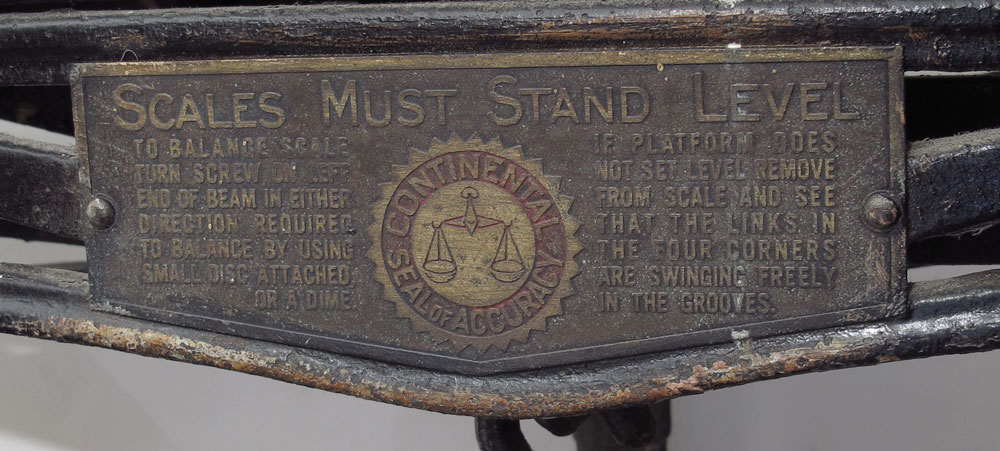 CONTINENTAL CAST IRON DOCTORS SCALE: Continental Accuracy plaque on back. 60'' h. x 18 1/2'' x 22''.
