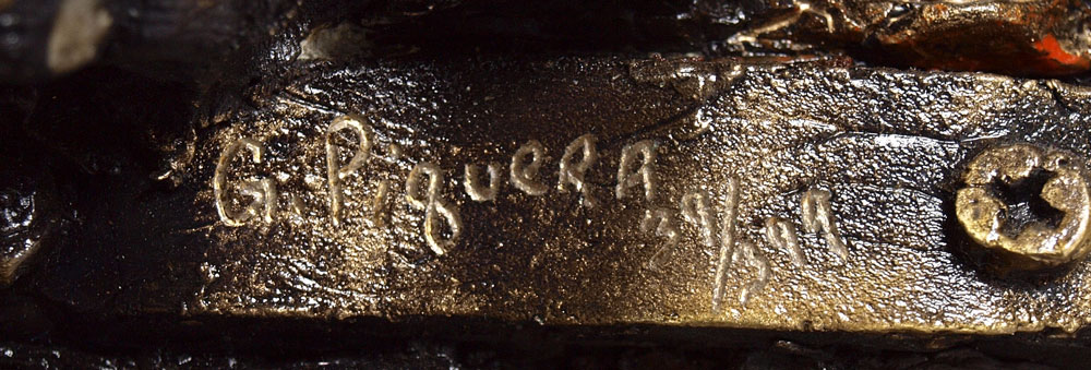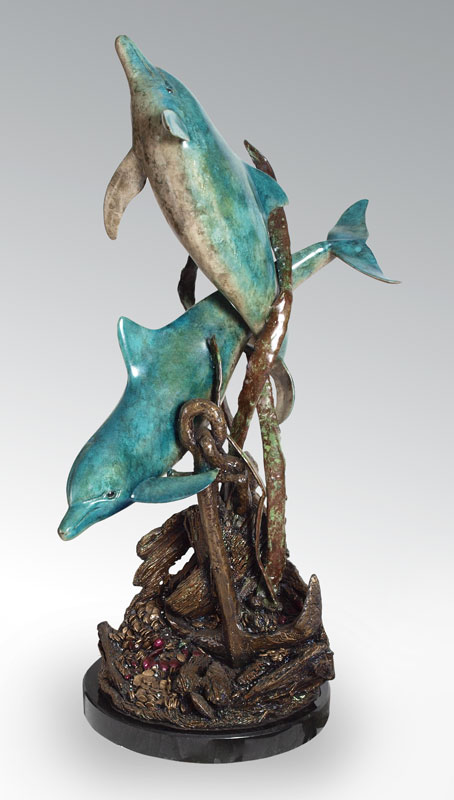 ''LOST TREASURE DOLPHINS'' SCULPTURE BY G. PIQUERA: Original bronze created by the lost wax method, mounted on a custom granite base, signed and numbered 39/299, 46'' h., 17'' w., 24'' d., 295lbs. COA included, appraised value $38,000.