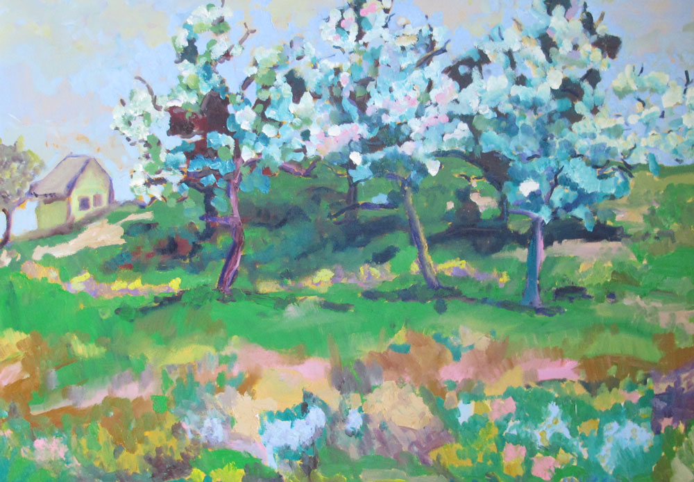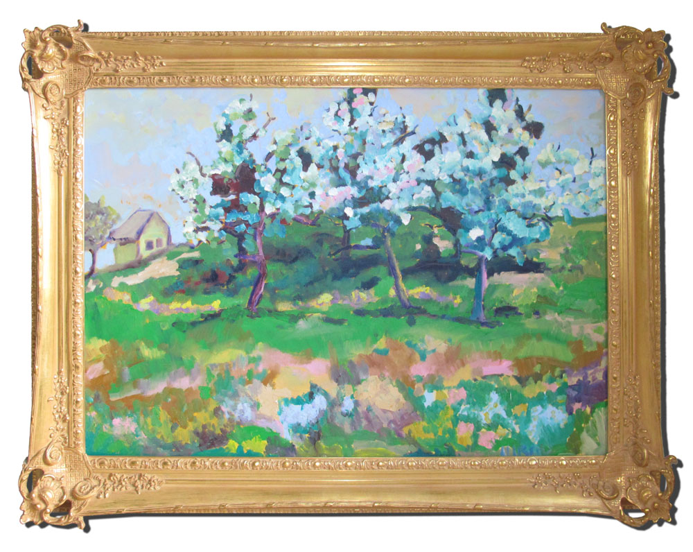 McCRADY, Allison, (American, 20th C): Cherry Blossom Time, OIL/Canvas, 24'' x 36'', signed, exceptional pierced and gilded Michael Murphy frame, 31'' x 43''.