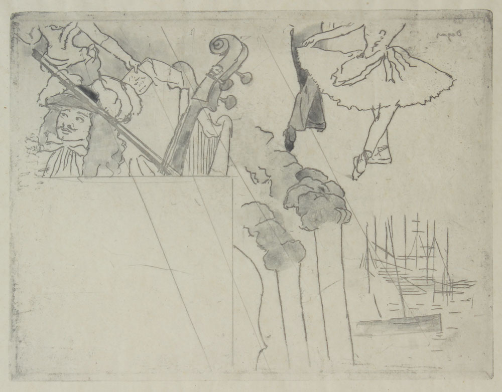 DEGAS, Edgar, (French 1834-1917): ''Project de Programme'', Etching, Merrill Chase COA, 11'' x 13 1/2'', framed 21 1/2'' x 24 1/2''.
