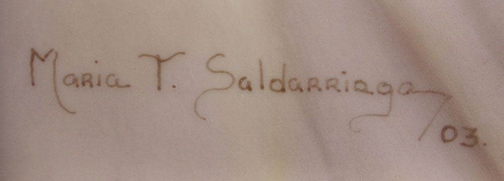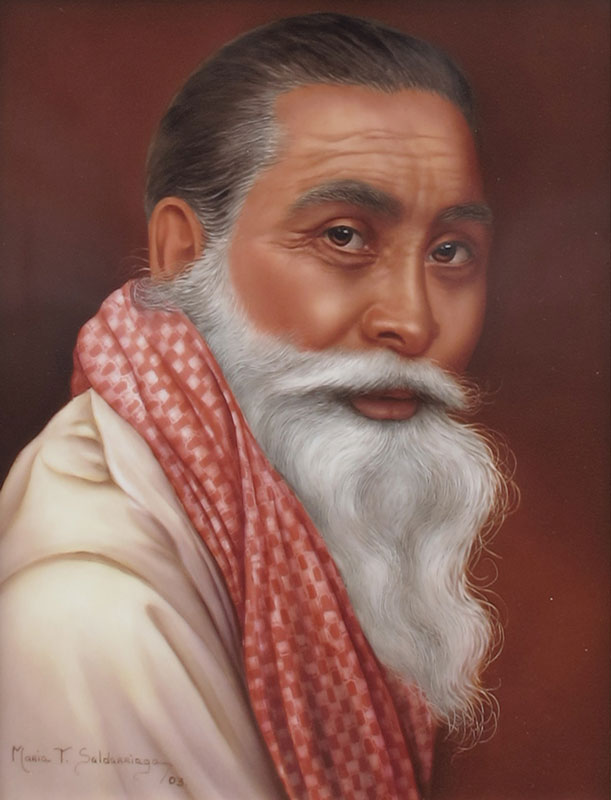 SALDARRIAGA, Maria, (American 20th C): White Bearded Man Possibly Hispanic, Painting on Porcelain, sight size 9 1/2'' x 7 1/4'', signed lower left, dated '03, sealed frame, 18'' x 16''.