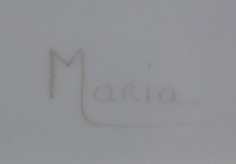 SALDARRIAGA, Maria, (American 20th C): Still Life of Pink Roses and Daisies, Painting on Porcelain, sight size 13 1/2'' x 9 1/2'', signed lower right, sealed frame, 16 1/2'' x 13''.