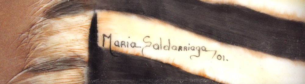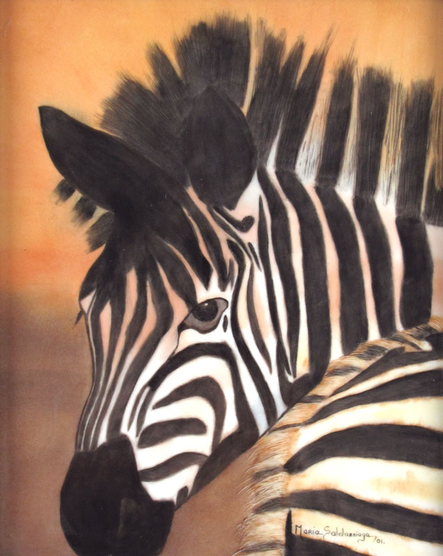 SALDARRIAGA, Maria, (American 20th C): Zebra, Painting / Porcelain, 10'' x 8'', signed & dated '01 lower right, framed 12 3/4'' x 10 3/4''.