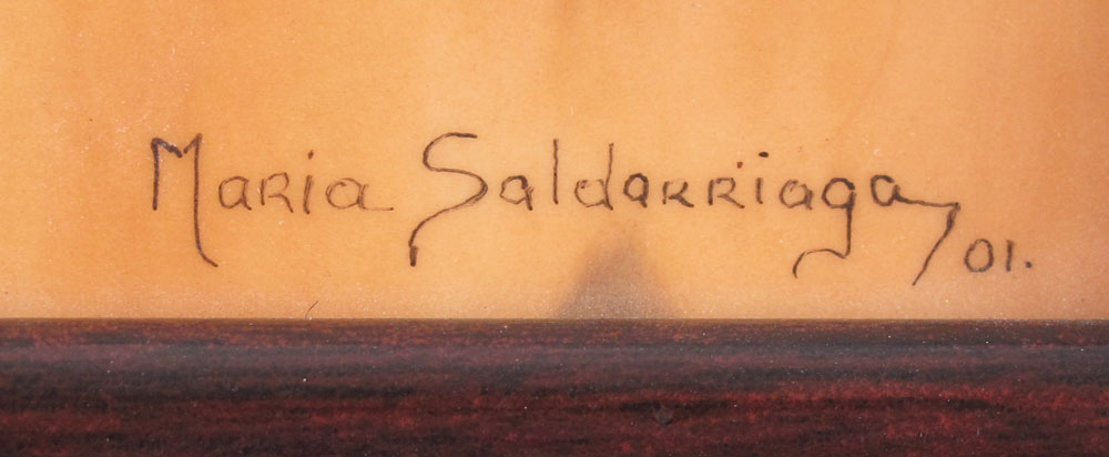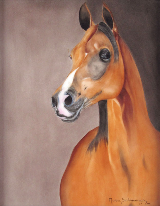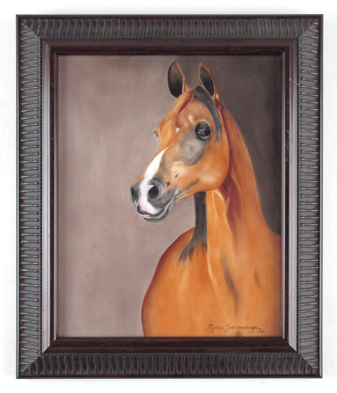 SALDARRIAGA, Maria, (American 20th C): Horse Portrait, Painting / Porcelain, 10'' x 8'', signed & dated '01 lower right, framed 12 3/4'' x 10 3/4''.