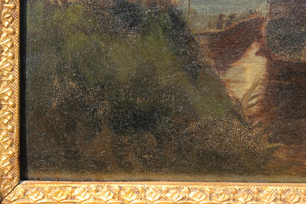 CONDITION: Needs cleaning, darker hues of paint in some areas appear lighter than they should be.