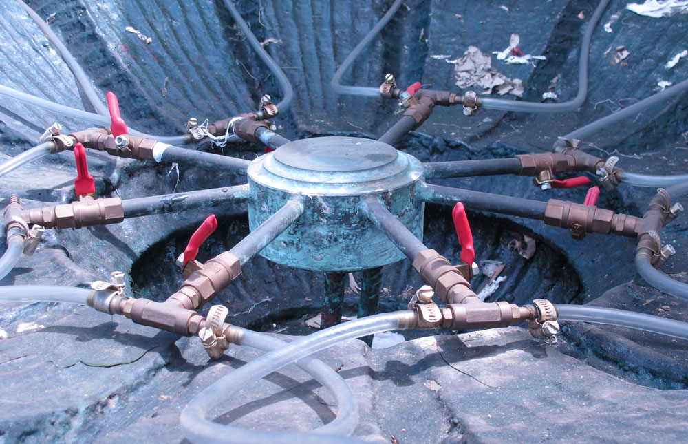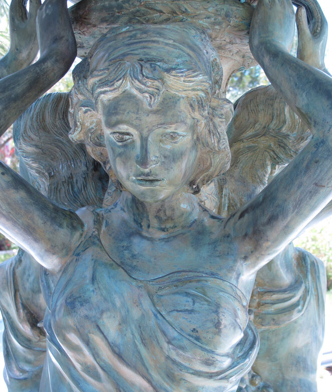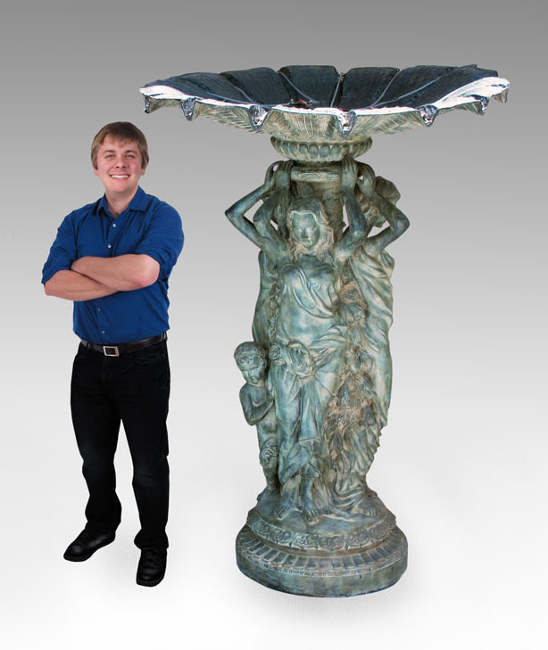 7 FT TALL LARGE BRONZE 3 GRACES FIGURAL FOUNTAIN: Patinated bronze with life size 3 Graces and putti. Plumbing has recently been serviced. Measures approx. 79 1/2'' h. x 57 1/2'' top dia. Please see similar, but not identical, fountain previous lot.