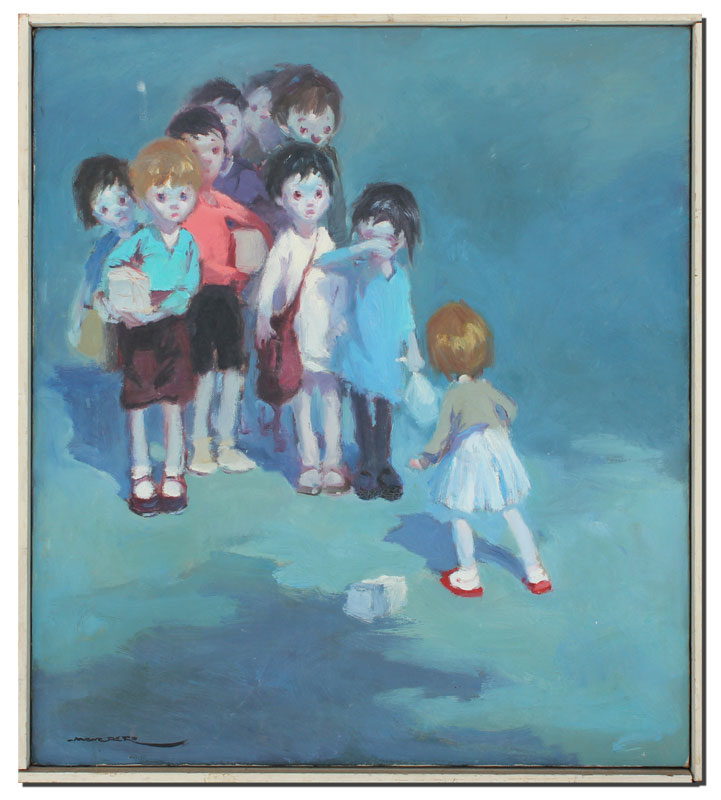 MONEDERO, Manuel, (Spanish, 1929-): ''Departure'', Oil/Canvas, 18'' x 16'', signed lower left, thin edge wood frame, 18 1/2'' x 16 3/4''.