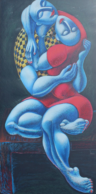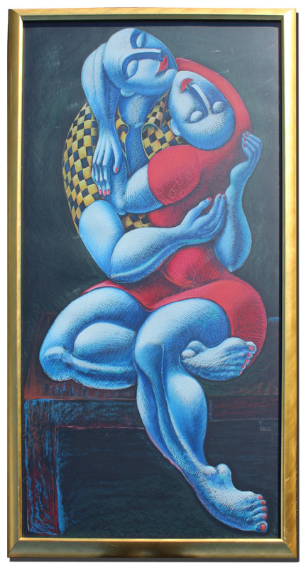 GEVORGIAN, Yuri, (Armenian, 1956-: ''The Hug'', Serigraph, 60'' x 34 1/2'', pencil signed lower right, pencil numbered 128/199 lower left, contemporary gold frame with minor wear, 64'' x 39''.