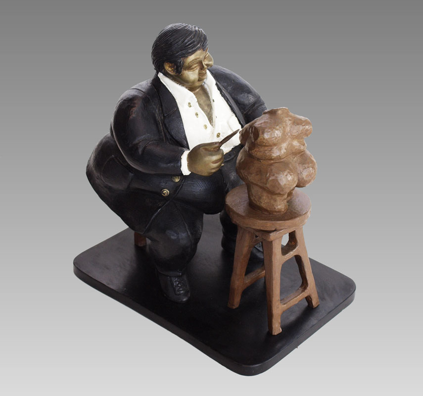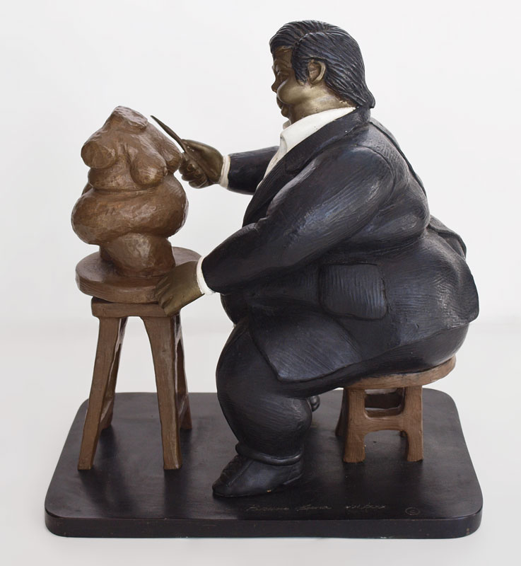 LUNA, Bruno, (Mexican, 1966-): Botero-esque Sculptor at Work on a Nude, Bronze, 11'' h., 10 1/2'' w., 7 1/2'' d., signed, numbered 7/30.