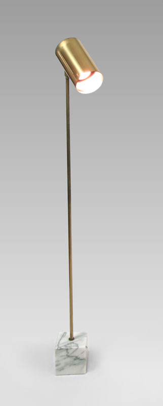 MODERN ITALIAN FLOOR LAMP: Single adjustable light, cube marble base. Approx. 50'' tall, the shade 7''.