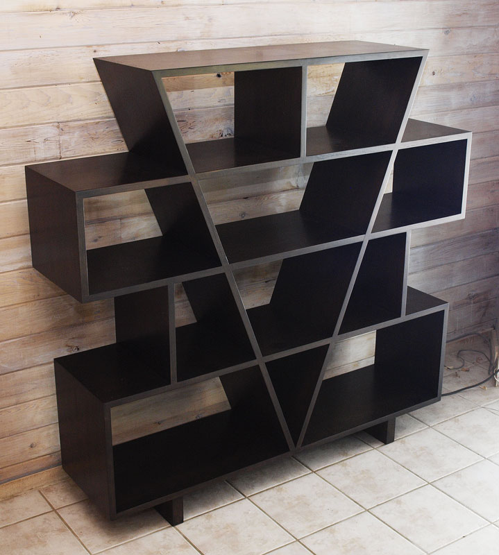 MARIA YEE FOR GUMPS VENTANA VISTA OPEN BOOKSHELF: Note the large V in the center. Solid hardwoods. Measures approx. 64'' tall x 66'' wide.